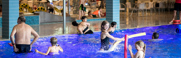 Familieområdet giver mulighed for leg og hygge for hele familien. Lufttemperaturen er 29 grader, og her er underholdning for både små og større børn med vandrutsjebaner, familiebassin og babyvenligt soppebassin.